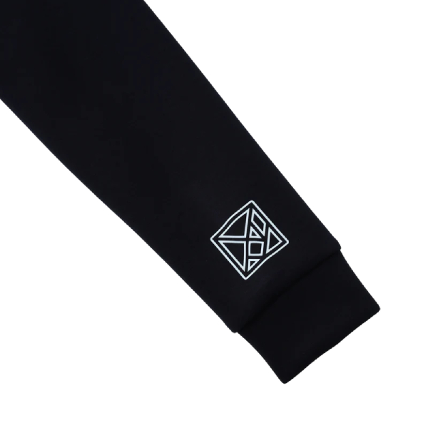 フロントからバッグに一周かけてタングラムロゴを大胆にアレンジしたダンボールニット素材のクルースエット。
