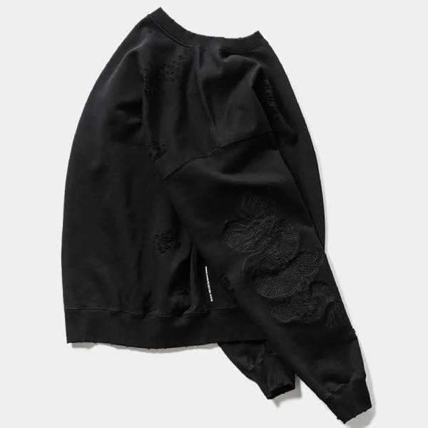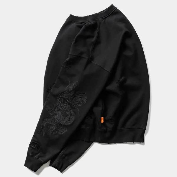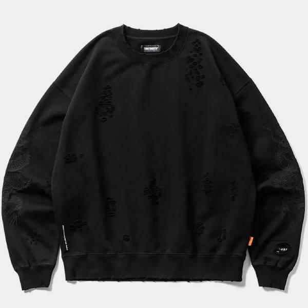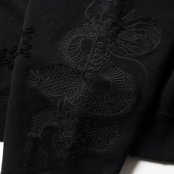 - > 【TIGHTBOOTHPRODUCTION-タイトブースプロダクション】DAMAGE CREW SWEAT (TIGHTBOOTH x DELUXE)【BLK】