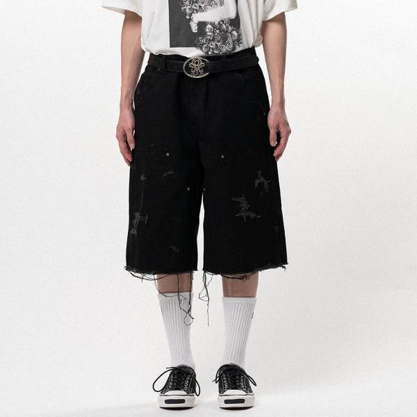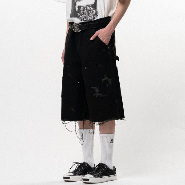 - > 【KAMIYA-カミヤ】BORO Duck Painter Bermuda Pants【BLK】